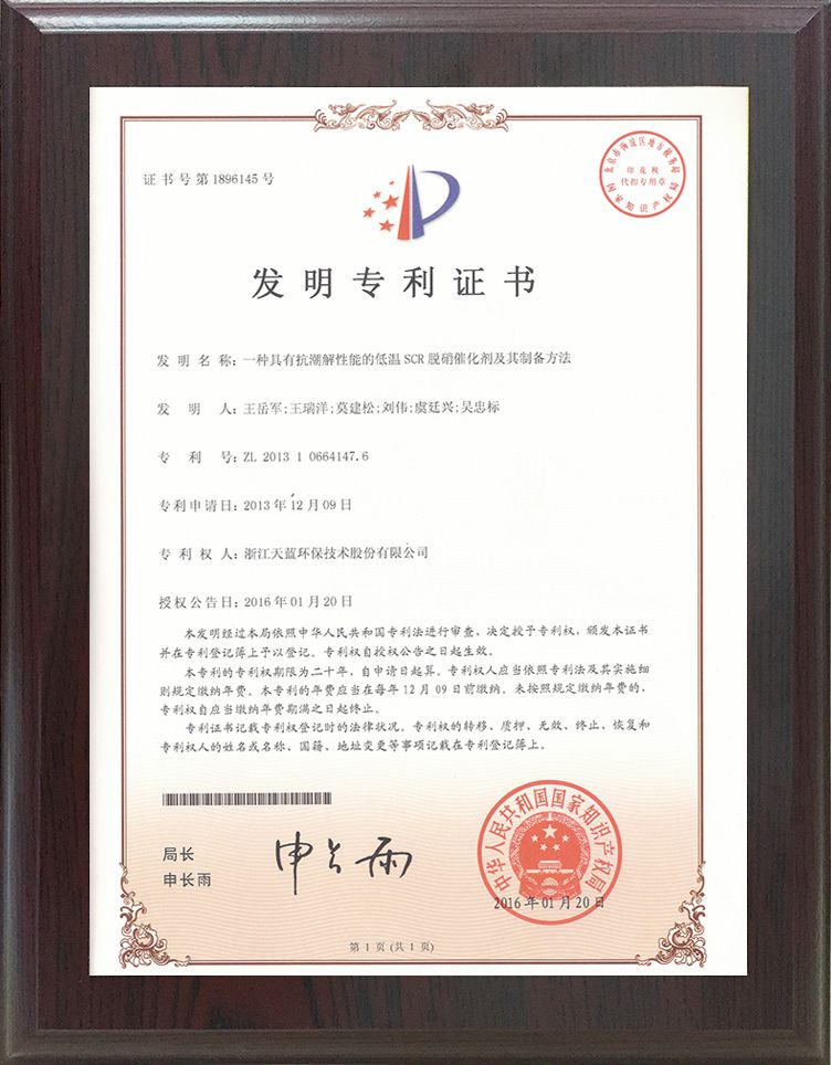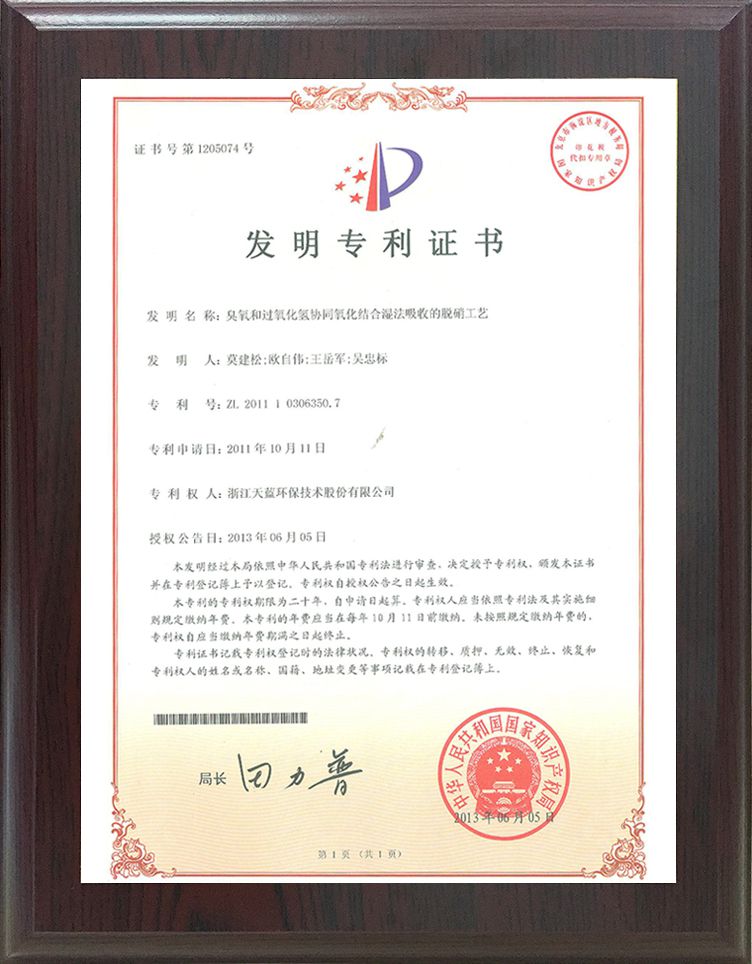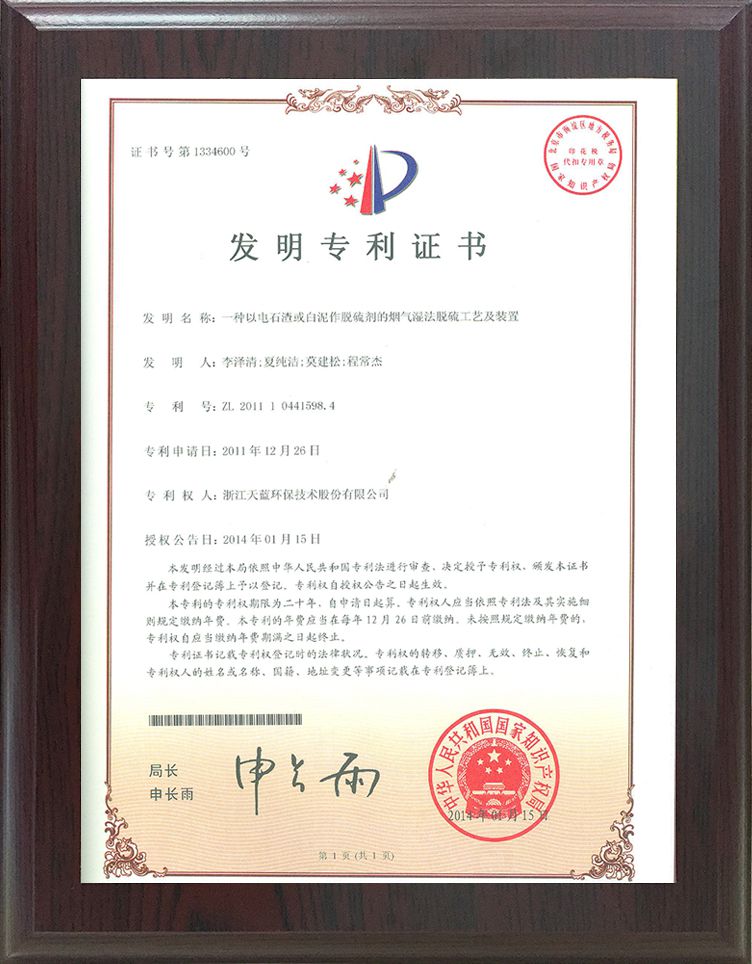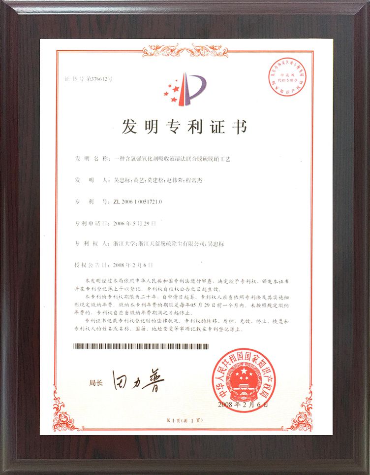 專利標準證書