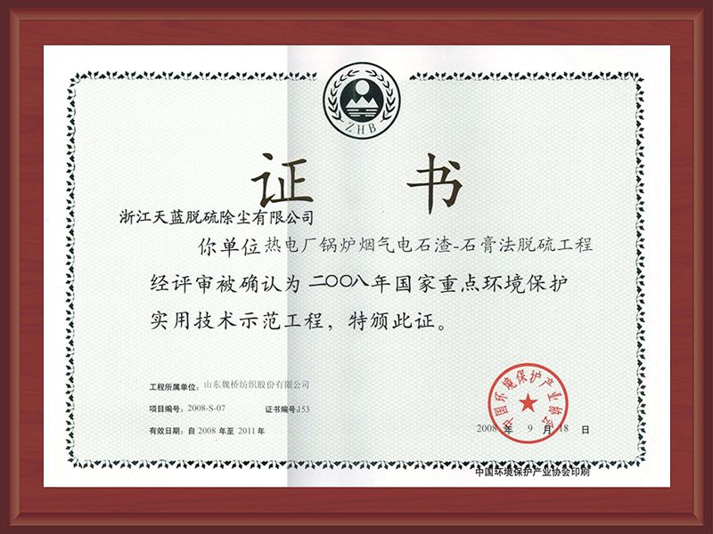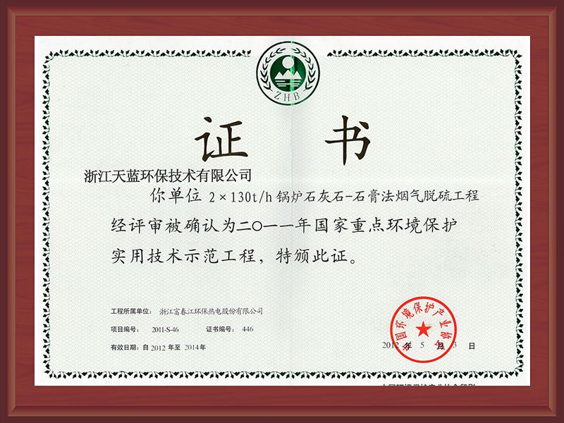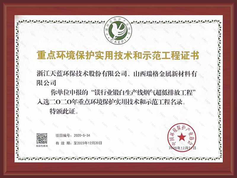 2020年重點環境保護實用技術和示范工程證書