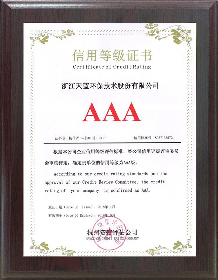 AAA信用等級證書2018.11-2019.10